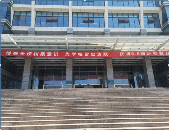1、档案馆制作了“增强全校档案意识,为学校留史资政——庆祝6·9国际档案日”宣传条幅,高高挂在图书馆(档案馆)大楼前大门醒目的地方,让师生员工知晓“6·9国际档案日”。